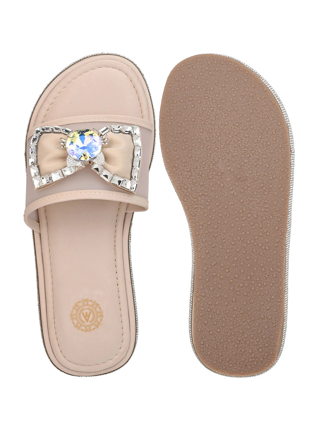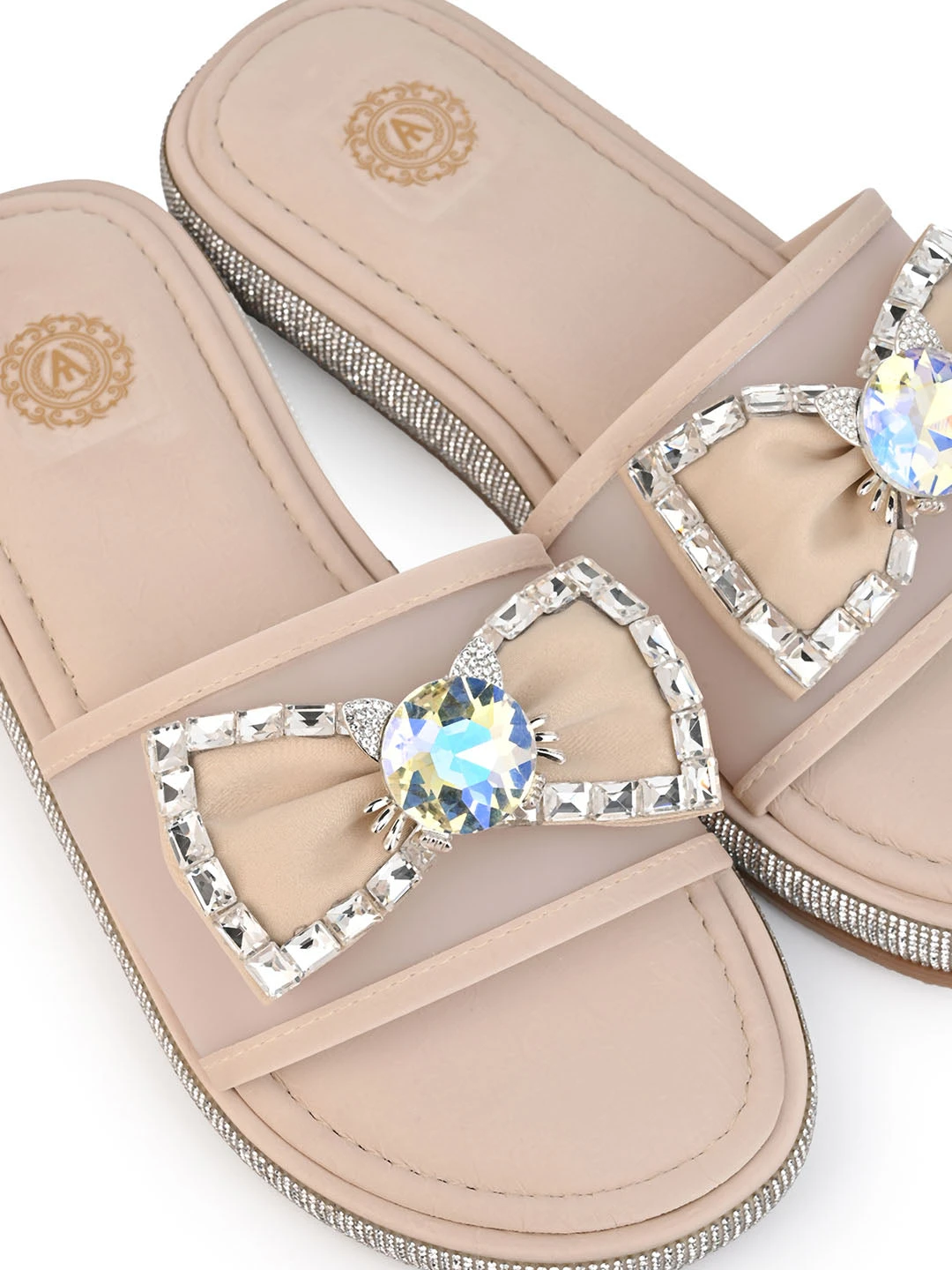 Aberto Torresi Elegant Nude Embellished Slide Sandals – Sparkle With Every Step