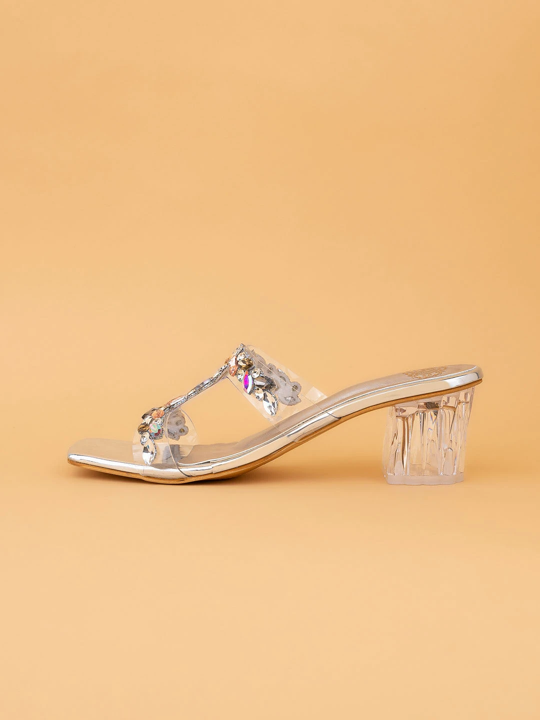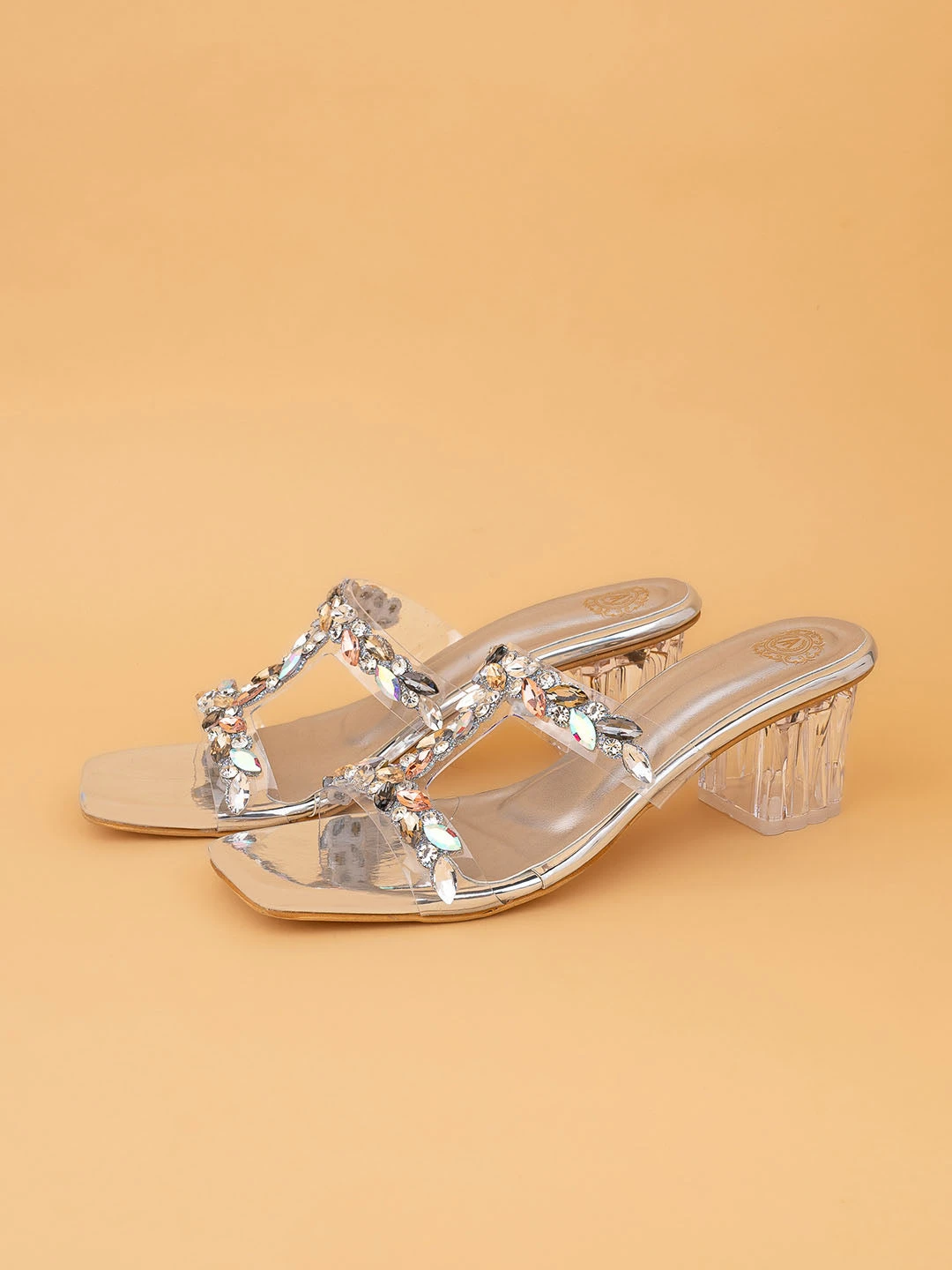 Aberto Torresi Embellished Slip-On Transparent StrapBlock Heels