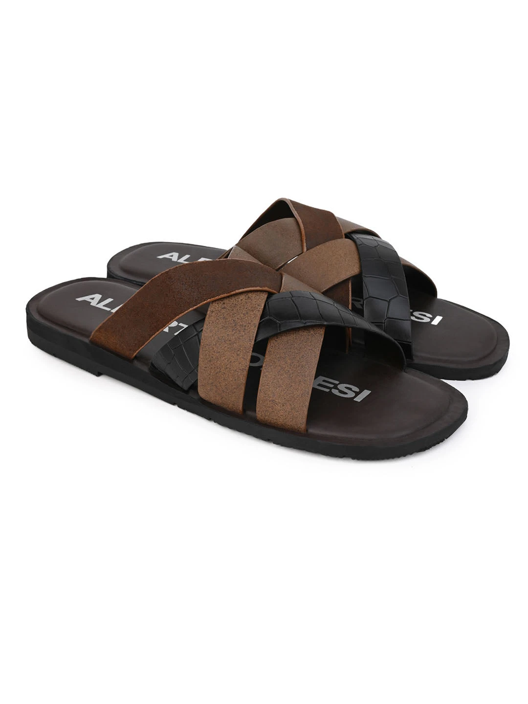 Crafted with genuine leather uppers in a stylish textured and suede combo, these slippers offer premium looks and lasting durability. Built with TPR sole using the latest tech and EVA-supported footbeds for all-day comfort. Perfect for daily wear, parties, or any occasion – where style meets ease.