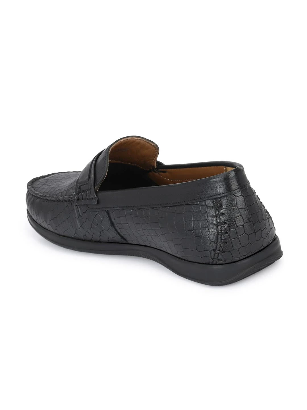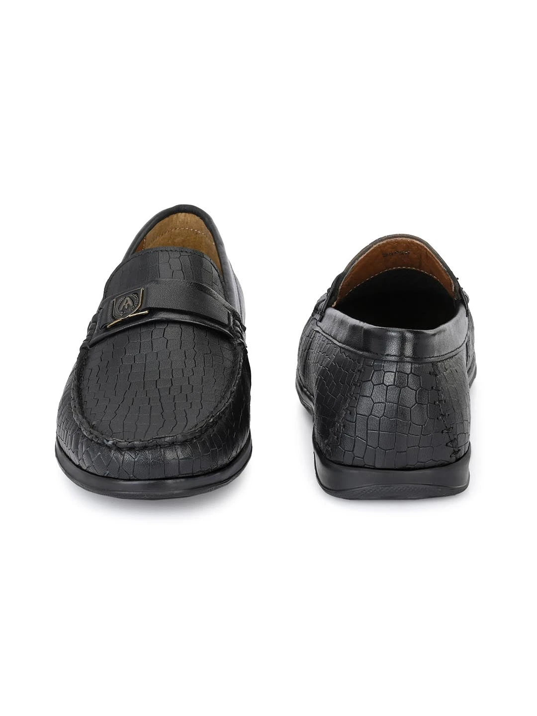Alberto Torresi Genuine Leather Black Textured Loafers For Men